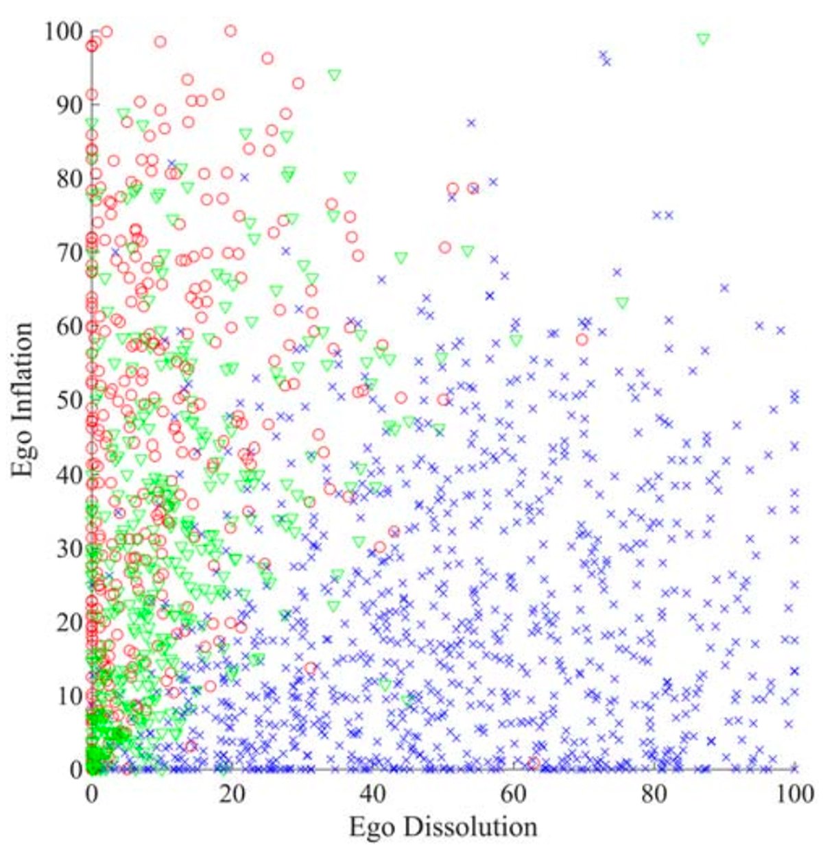 The relationship between ego-dissolution and ego-inflation for experiences occasioned by: